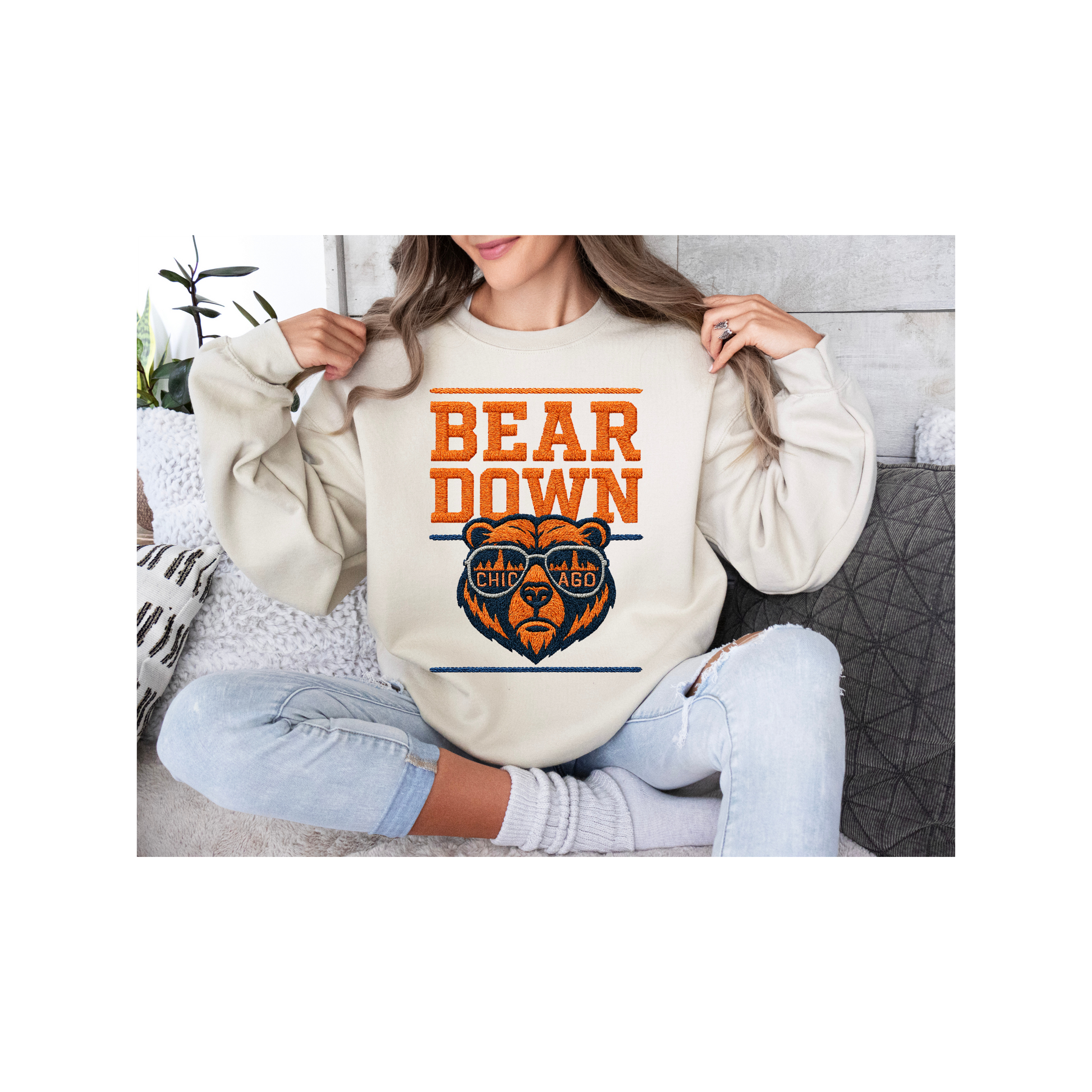 FAUX EMBROIDERED BEAR DOWN DTF Transfer